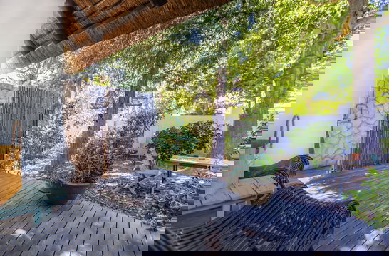 Located on the ground floor, the room opens directly onto the lush garden and pool area, inviting you to relax in a tranquil, natural setting.