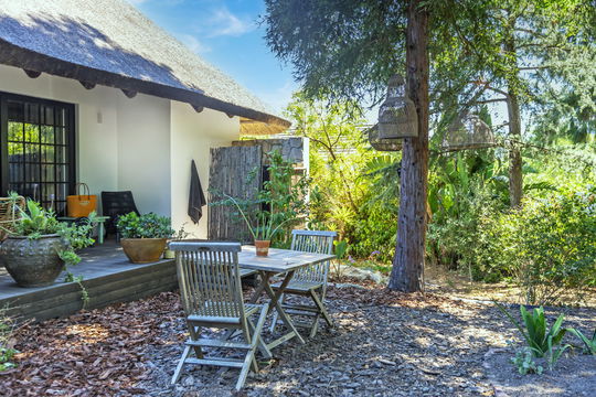 A freshly prepared breakfast is served each morning in the garden pavilion, surrounded by greenery and birdsong.
